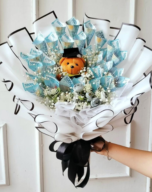 Money bouquet ini bukan hanya sekadar hadiah, tapi juga bentuk apresiasi yang bermakna dan fungsional.